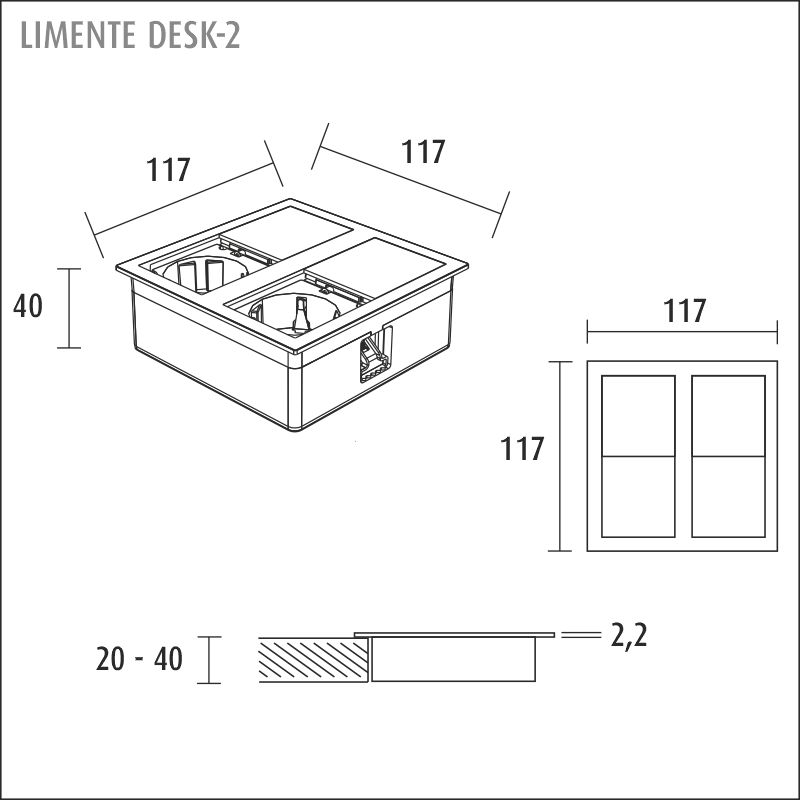 The DESK-2 has two sockets and DESK-2 USB one socket and two USB (A+C) connectors. You can either use the sockets separately or at the same time. When only one of them is in use, the other is covered from crumbs and litter. When not in use, DESK-2 is flat and even, making the tabletop appear even and solid.