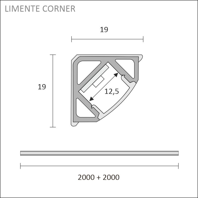 LIMENTE CORNER IP44:n vakiopituudet ovat 2 ja 4 m ja nauhan voi lyhentää haluttuun mittaan noin 3,3 cm välein, mikä mahdollistaa erilaiset, yksilölliset ratkaisut. Valaisimessa käytetään laadukkaita ledejä, joiden värintoistoindeksi on CRI>85, hyötysuhde 115 lm/W, valoteho 1380 lm/m ja värilämpötila noin 3000 K (pieniä värilämpötilaeroja voi olla tuotantoerittäin). Valaisimessa on profiilin lisäksi mattapintainen suojus (diffuusori), joka tekee valosta pisteetöntä ja samalla muuttaa valoa hieman lämpimämmän sävyiseksi. Kaikki valaistusarvot on annettu nauhalle ilman suojusta.