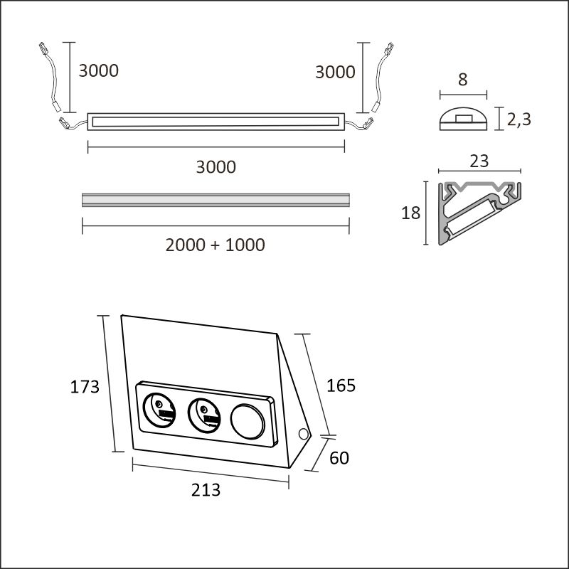 1300 lm/m, 3000K, alumiiniLUXA-31 pistorasia