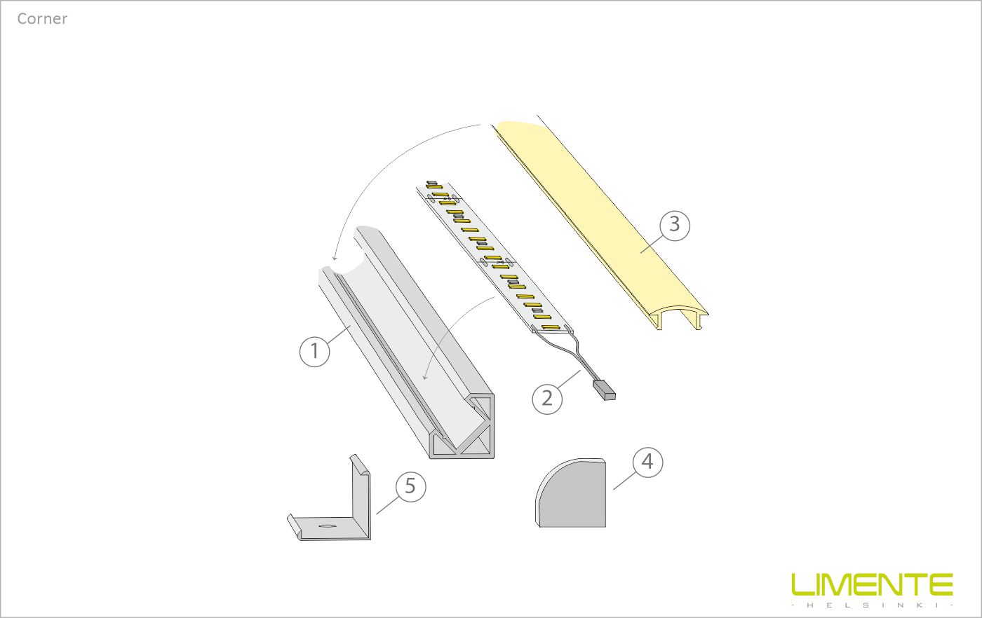 LIMENTE välitilasetti on monipuolinen, lyhennettävissä oleva työ- ja tunnelmavalaisin, jota voidaan käyttää keittiön työskentelyvalaistuksen lisäksi epäsuorana valona kaapin päällä, syvennyksissä, sokkeleissa, katoissa yms. Valo on tyylikkään jatkuva ilman valon katkaisevia liitoskohtia ja yhtenäinen profiili antaa tasaisesti valoa koko alueelle. Keittiön välitilassa profiili sijoitetaan lähelle yläkaapin etureunaa. Välitilasetti sisältää kaikki tarvittavat osat välitilavalaistuksen tekemiseen.