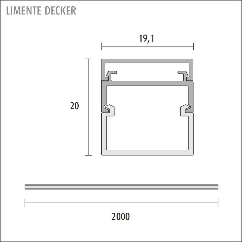 LIMENTE DECKER -alumiiniprofiili valaisee sekä eteenpäin että sivuille ja siinä on erillinen kiinnityslista, jonka sisälle mahtuu myös led-nauhan syöttöjohto. Profiilin avulla voi korostaa kalusteiden muotoja sijoittamalla profiili kalusteiden väliin, jolloin muodostuu valoraita tai profiilia voi käyttää yleisvalona esim. peilikaapissa, jolloin valo suuntautuu miellyttävästi kolmeen suuntaan. Profiilin mukana tulevat tarvittavat kiinnikkeet ja päätypalat.