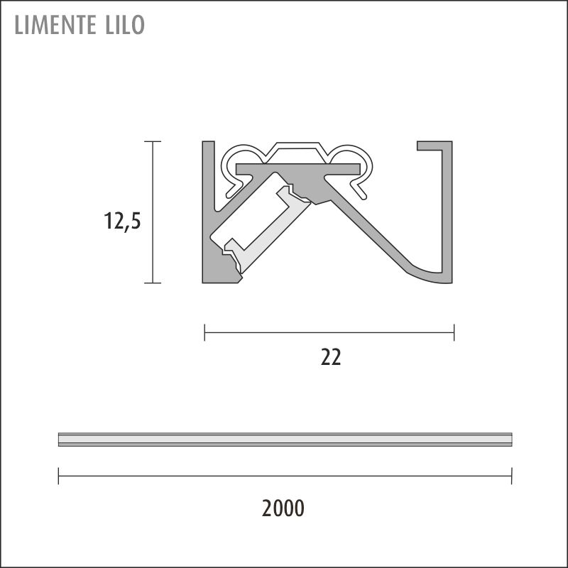 LIMENTE LILO on pintaan asennettava profiili, joka suuntaa valoa taaksepäin. Valon suuntautumista voi hyödyntää erityisesti, kun valaistus halutaan epäsuorasti seinän kautta tai profiilia käytetään esimerkiksi vaatekomeroissa ja valon halutaan suuntautuvan kohti kaapin takaseinää. LILO-profiili on pinta-asenteinen. Profiili on hyvin pienikokoinen ja poiketen muista LIMENTE-profiileista LILA- ja LILO-profiileissa käytetään 8 mm led-nauhaa. Profiilin mukana tulevat tarvittavat kiinnikkeet ja päätypalat.