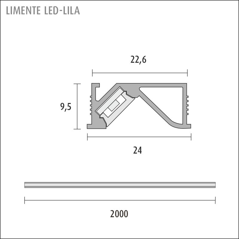 LIMENTE LILA -valaisimet ovat saatavilla kahdessa värilämpötilassa (3000K, 4000K). Alumiiniprofiilin pituus on aina 2 m ja se on lyhennettävissä. Vakiopituudet ovat 2 ja 4 m ja led-nauhan voi lyhentää haluttuun mittaan noin 6 cm välein, mikä mahdollistaa erilaiset, yksilölliset ratkaisut. Valaisimen hyötysuhde on erinomainen (jopa 132 lm/w), värintoisto on lähes täydellinen (CRI>80), valoteho 500 lm/m ja värilämpötila joko 3000K tai 4000K. Valaisimessa on profiilin lisäksi mattapintainen suojus (diffuusori), joka vähentää pistemäisyyttä ja samalla muuttaa valoa hieman lämpimämmän sävyiseksi. Kaikki valaistusarvot on annettu led-nauhalle ilman suojusta.